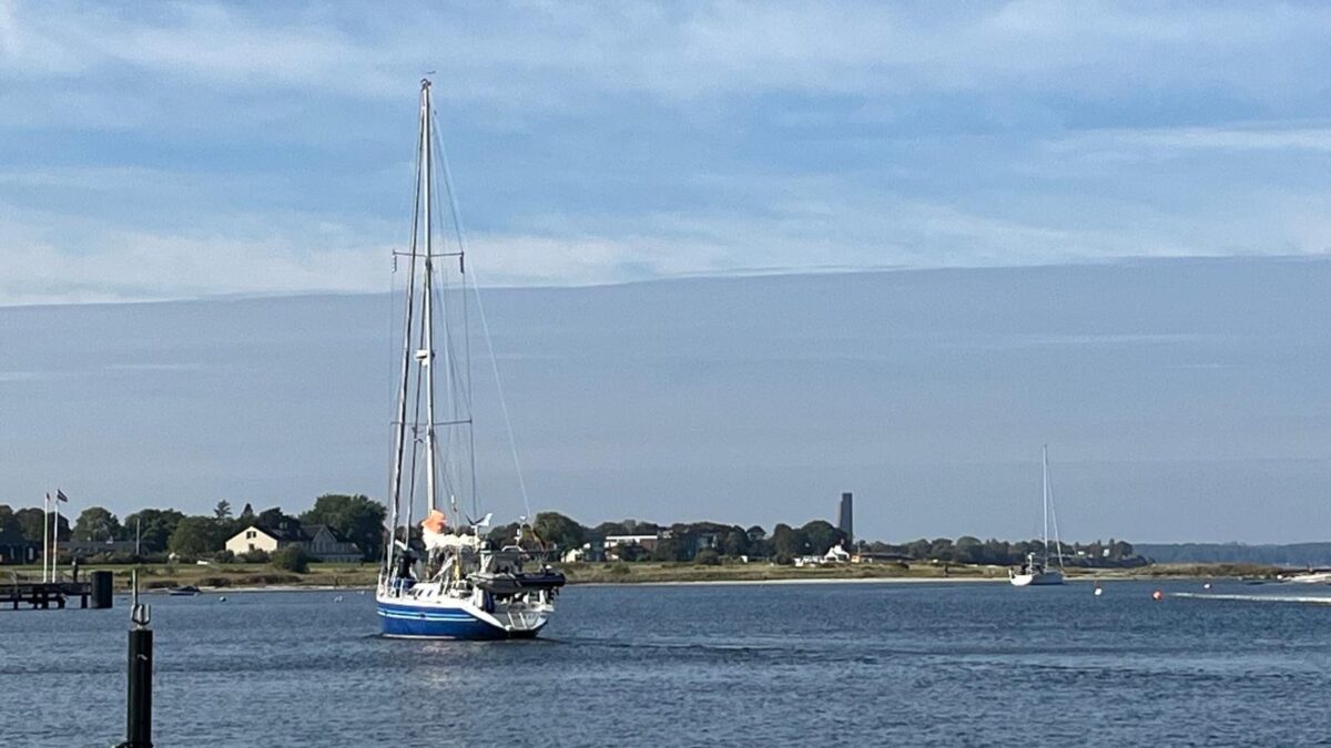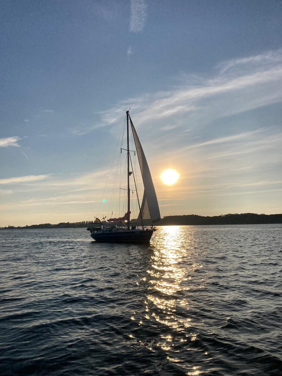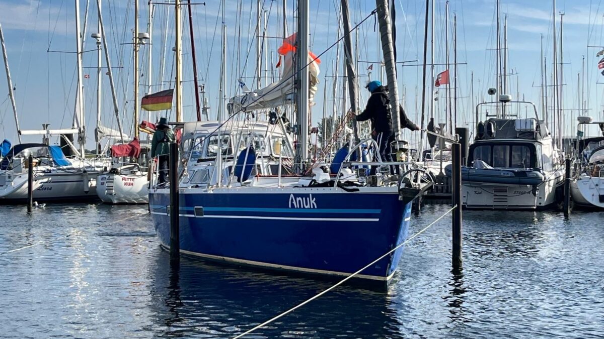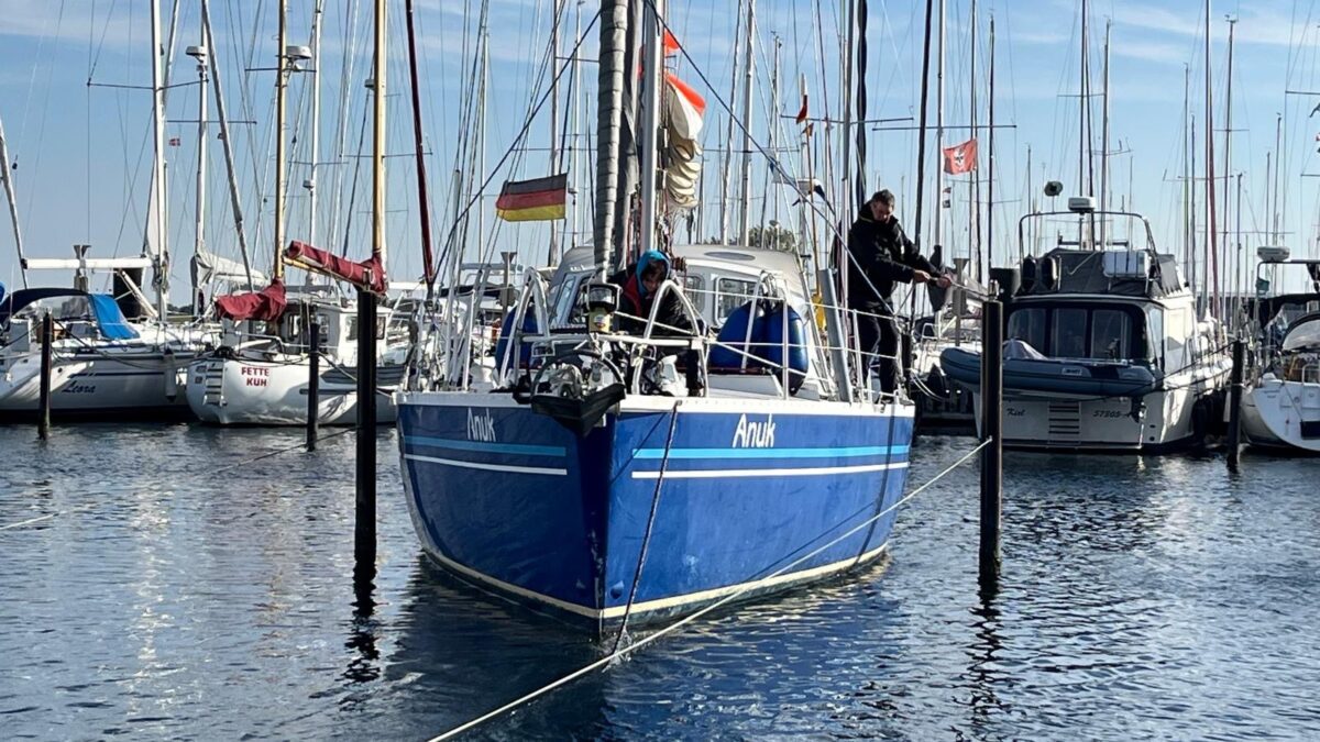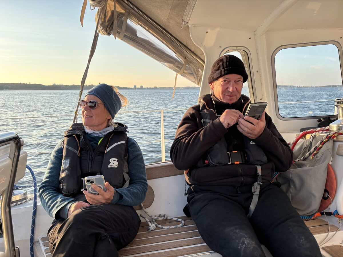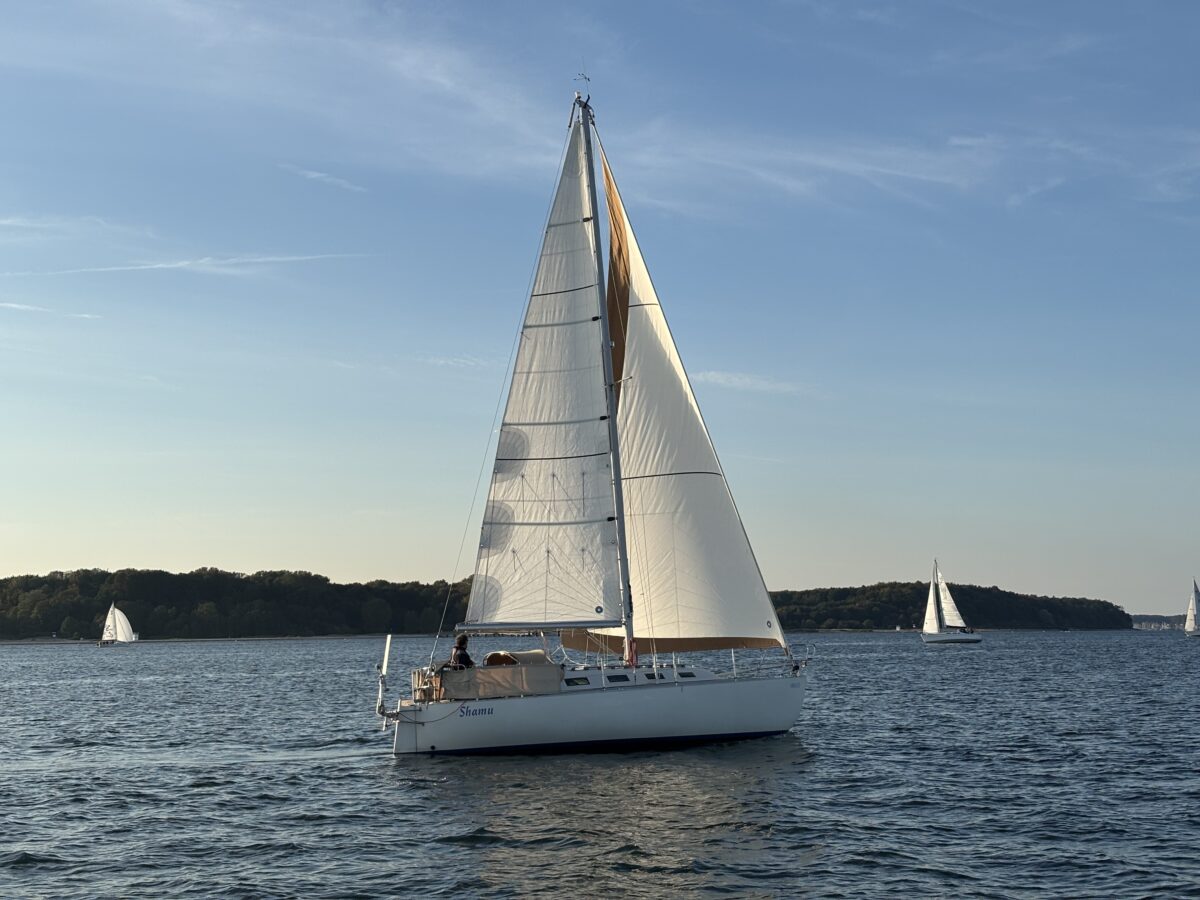 In der Kieler Förde werden wir plötzlich von Michael auf seiner Schamu freudig begrüßt und mit Ehrengeleit in die Marina Wendtorf begleitet.