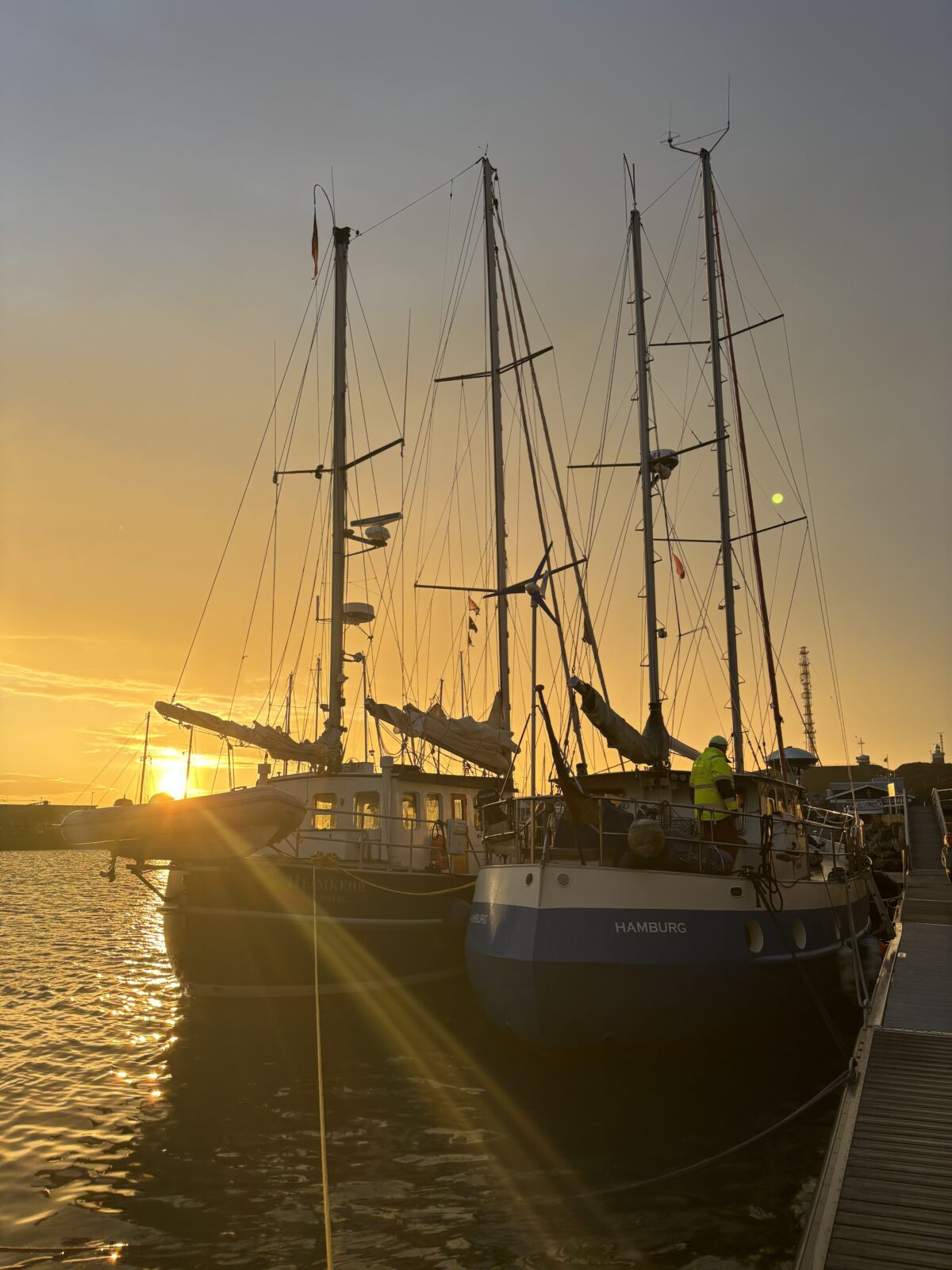 Auf Helgoland treffen wir Marlene und Bert von der Heimkehr. Wir gehen zweimal mit ihnen essen (bester Fisch und beste Pizza). Außerdem dürfen wir noch die Heimkehr besichtigen. Ein tolles beeindruckendes Schiff (6 Jahre jedes Wochenende restauriert, unglaubliche Leistung!)