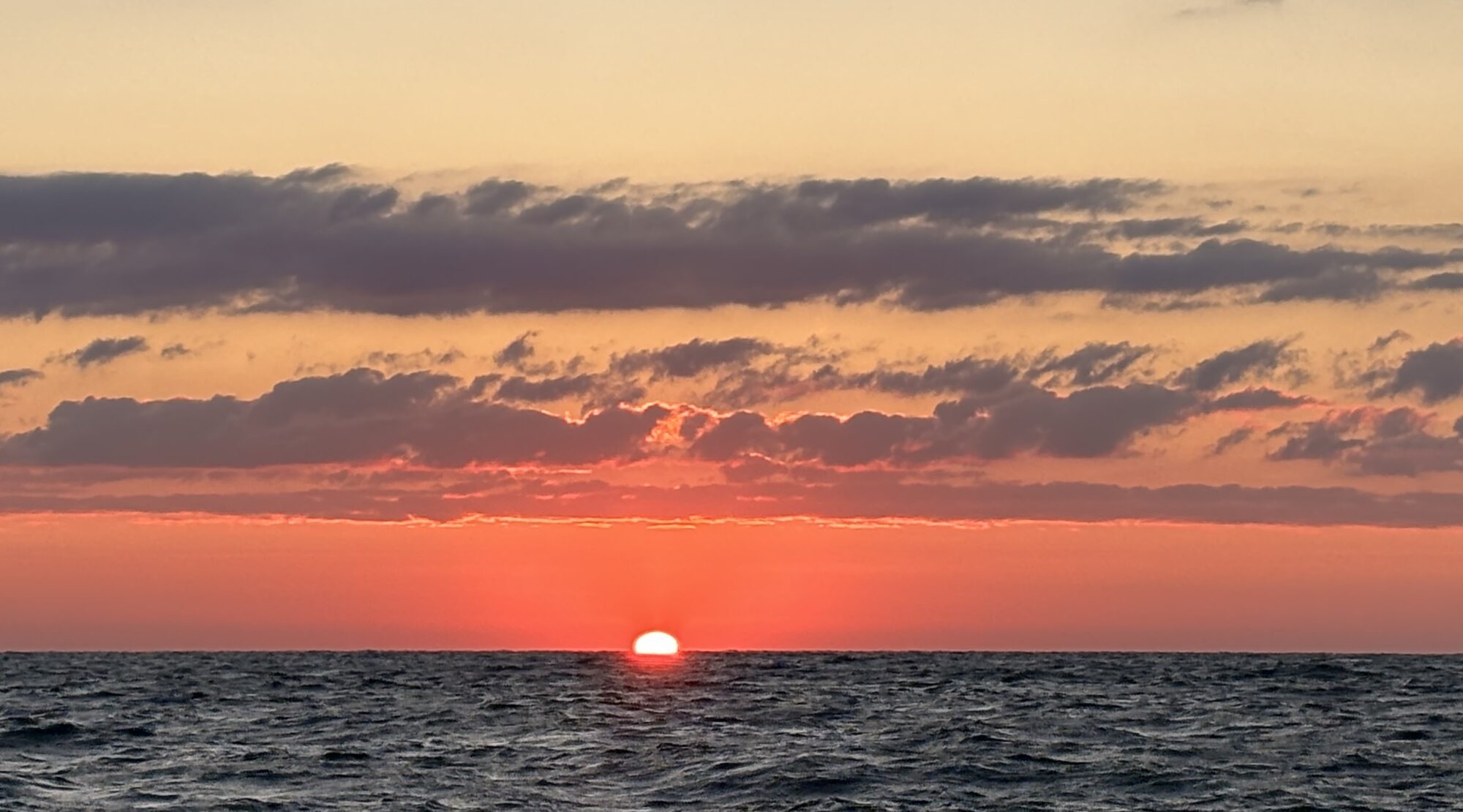 Nun aber geht es wieder weiter. Über Nacht von Sonntag auf Montag segeln wir nach Helgoland. Beeindruckend sind die Lichter der vielen Schiffe, die auf Reede liegen und auf Einlass nach Bremerhaven, Wilhelmshaven und Hamburg warten. Während dieser Nachtfahrt „verkurzweiligt“ sich die wachhabende Crew mit der Erkennung der sich in Fahrt befindlichen Fahrzeuge durch ihre Lichterführung. Die Crew bemerkt einen Schimmer hinter dem Horizont und rätselt lange darüber, ob es nicht schon der Leuchtturm Helgoland sei. Die Captain klärt mit einem kurzen trockenen Hinweis “Kennung 5 Sekunden Flash“ die Situation. Wir segeln ein Stück weit mit halbem Wind. Helgoland morgens und abends ohne die mit Fähren und Schnellfähren ankommenden Tagestouristen ist wunderbar.